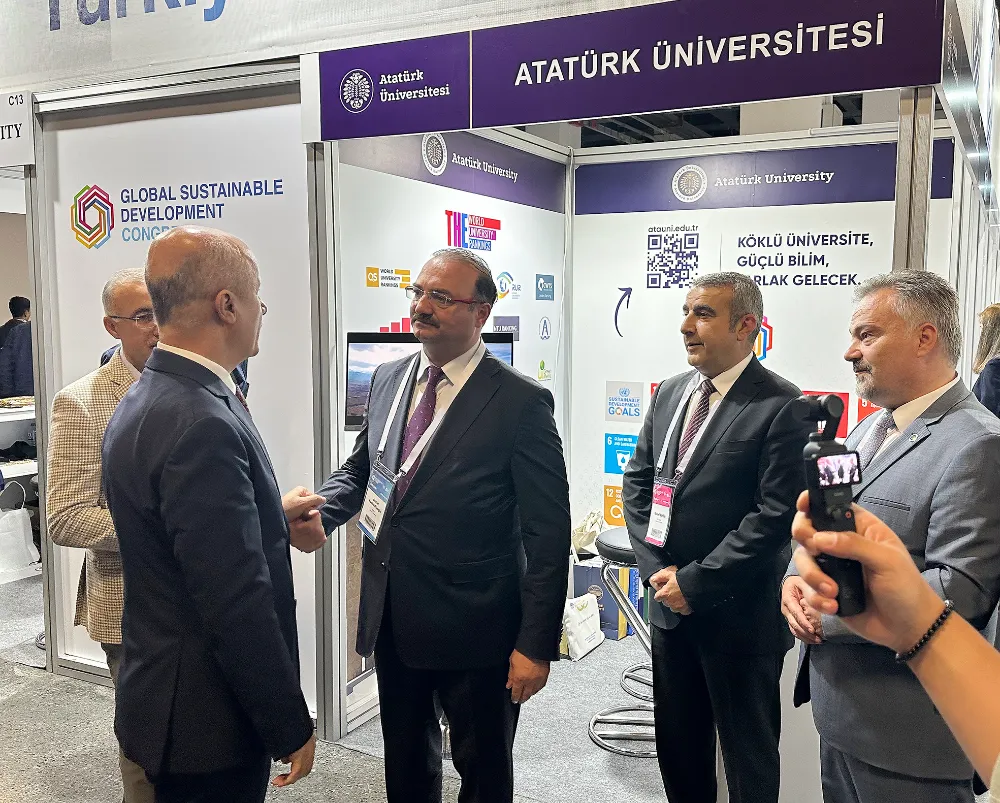 Atatürk Üniversitesi, kongre boyunca açtığı stantta sürdürülebilir tarım, dijital halk sağlığı ve eğitime eşit erişim başta olmak üzere birçok alanda yürüttüğü ulusal ve uluslararası projeleri katılımcılarla paylaştı. Alanında uzman akademisyenlerin bire bir bilgi verdiği stant, YÖK Başkanı Prof. Dr. Erol Özvar, Filipinler Cordillera Kariyer Gelişim Koleji, Endonezya Airlangga Üniversitesi, Azerbaycan Mimarlık ve İnşaat Üniversitesi, Ekvador UTEG Üniversitesi, İzmir Demokrasi Üniversitesi, Bahçeşehir Üniversitesi, Hacettepe Üniversitesi ve Korkut Ata Üniversitesi gibi çok sayıda kurumun yöneticileri ve uluslararası akademisyenler tarafından ziyaret edildi.
