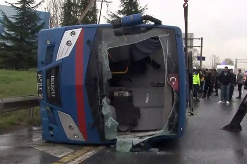 Valilikten yapılan açıklamaya göre, bugün saat 15.35 sıralarında, içerisinde 12 mahkum, 6 jandarma personeli ve 1 şoför bulunan cezaevi nakil aracı, Kağıthane ilçesi Çobançeşme Mahallesi 1'inci Kemer mevkiinde devrildi. Kazada, 2’si jandarma personeli olmak üzere toplam 19 kişinin yaralandığı, jandarma personelinden 2’sinin durumunun ağır olduğu bildirildi. Yaralıların olay yerine sevk edilen sağlık ekiplerince çevredeki hastanelere kaldırılarak tedavi altına alındığı kaydedildi. (İLKHA)