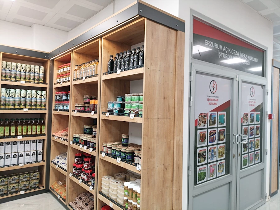 Erzurum Açık Ceza İnfaz Kurumu Müdürlüğünün Cumhuriyet Caddesinde açılmış bulunan satış mağazasında da, Türkiye’nin hemen her yanından gelen ve hükümlüler tarafından yapılmış olan; ayakkabıdan her türlü tekstil ürününe, gıdadan-el sanatlarına kadar birçok ürünün yer aldığı, vatandaşların rahatlıkla gezip alış-veriş yapabilecekleri satış reyonları bulunmaktadır.