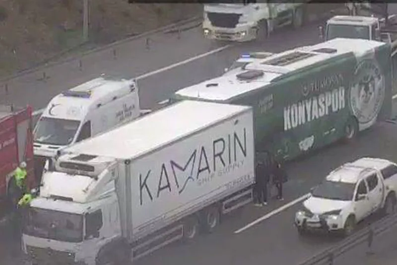 İstanbul Valiliğinden yapılan açıklamaya göre, bugün saat 14.55 sıralarında, Konyaspor U19 Takım Otobüsü seyir halindeyken Pendik Kurna Anadolu Otoyolu Kuzey Marmara Sapağı mevkiinde, önünde ilerleyen kamyona arkadan çarptı. Kaza sonucu biri otobüs şoförü, biri kamyon şoförü ve 5’i futbolcu olmak üzere toplam 7 kişi yaralandı. İhbar üzerine olay yerine sağlık, itfaiye ve emniyet ekipleri sevk edildi. Yaralılar, ilk müdahalelerinin ardından çevredeki hastanelere kaldırılarak tedavi altına alındı. Yaralıların hayati tehlikesinin bulunmadığı bildirildi. Kazayla ilgili inceleme başlatıldı. (İLKHA)