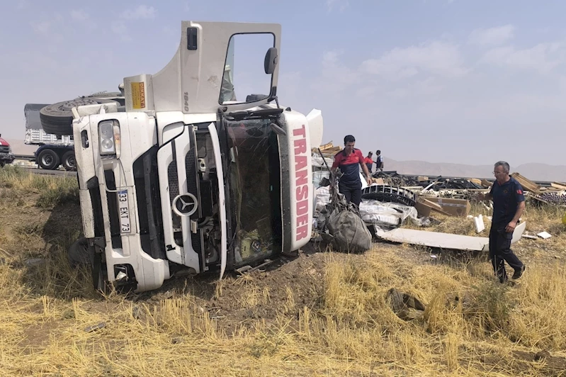 Sürücüsünün ismi öğrenilemeyen 33 EKT 73 plakalı tır, sürücünün direksiyon hâkimiyetini kaybetmesi sonucu yol kenarına devrildi.