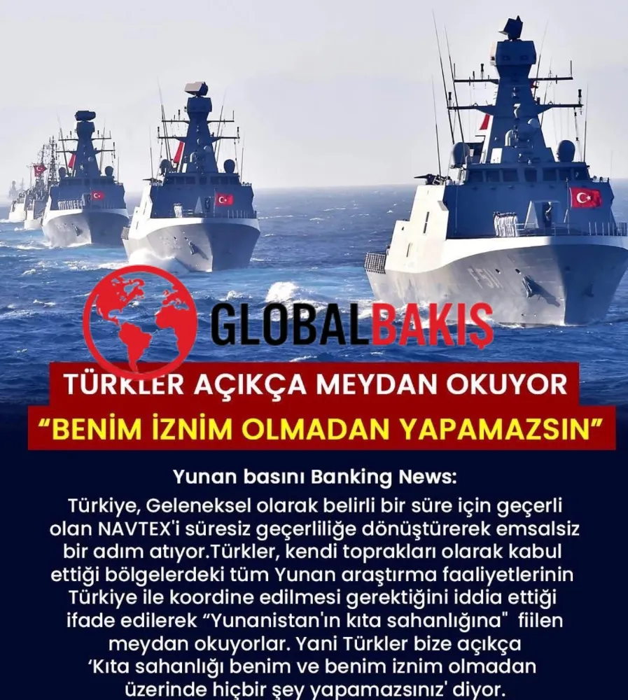 Yunanistan merkezli ekonomi ve savunma odaklı yayın organı Banking News, Türkiye’nin Ege Denizi’ne ilişkin yayımladığı NAVTEX (Denizcilere Duyuru) ilanlarını haberleştirdi. Haberde, Türkiye tarafından yayımlanan NAVTEX’lerin süresiz nitelikte olduğu ve Ege Denizi’nin belirli bölgelerini kapsadığı bilgisi yer aldı.