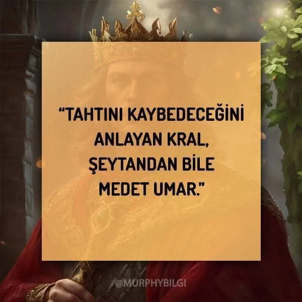 Dün bunları yaşadık ve kaybettik. Bugünde kaybedeceğimiz şüphesizdir. Bu sebeblerle; hepinizi, gerçeklerle yüzleşmeye davet ediyorum... Hepinizi, ülkenize, devletinize, milletinize vede kendinize sahip çıkmaya çağırıyorum. Hepinizi, Türk Milletini yüzyıllardır sarıp sarmalayan ve de aklını ve zihnini esir eden zincirleri kırmak için mücadeleye davet ediyorum. Bunu ya yapacaksın ya da yapacaksın! Başka çaren yok...