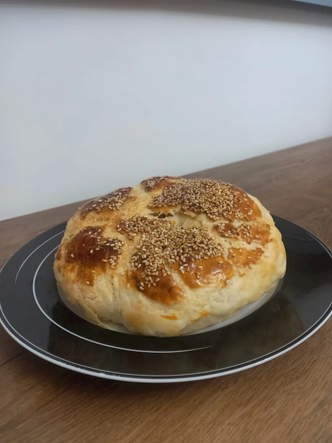 Kare şeklini verdikten sonra dört ucunu bir araya toplayıp yuvarlak bir şekil verip çöreğimize elimizle şekil verelim.