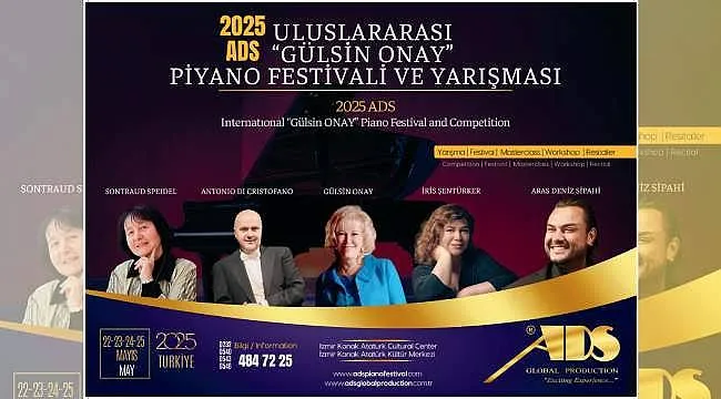 2025 ADS Uluslararası “Gülsin Onay” Piyano Festivali ve Yarışması, 22-25 Mayıs tarihleri arasında İzmir Konak Atatürk Kültür Merkezi’nde gerçekleşti. Yoğun ilgi gören festival ve yarışma, aylar öncesinden rekor sayıda başvuru aldı .