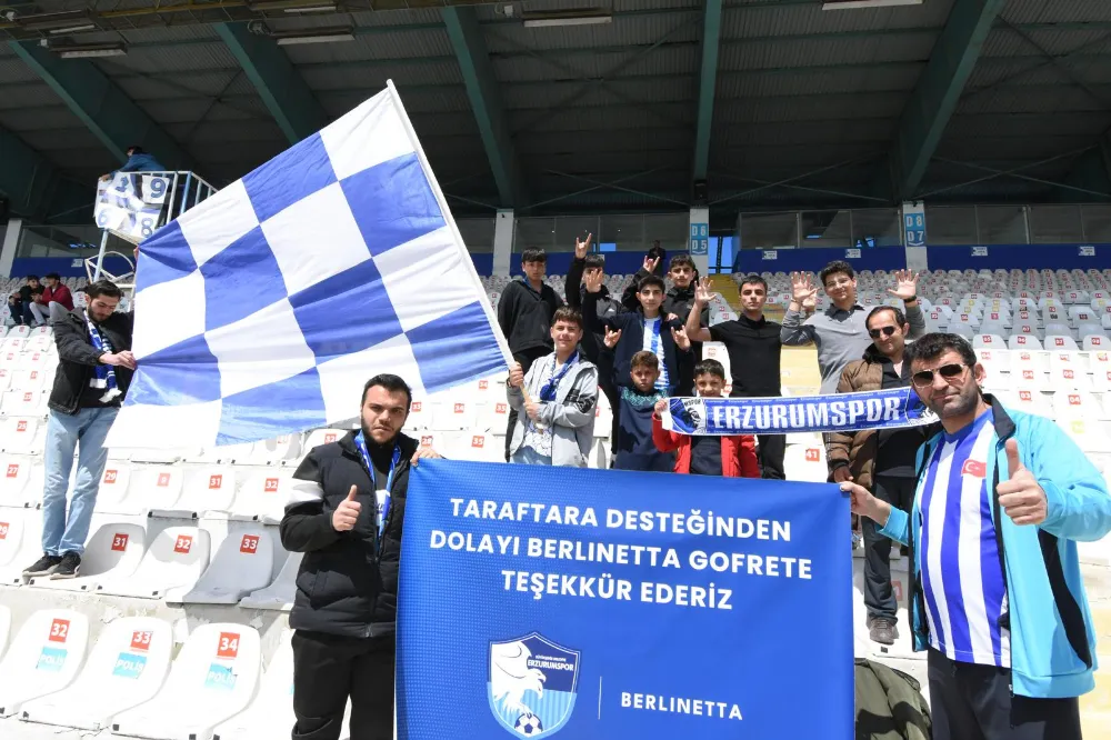 Özel gofretleri, doğal ve farklı lezzetleri ile Erzurum'da kurulan tesislerin kısa zaman içerisinde üretime geçmesi ile Erzurumsporlu taraftarlara 'Gofret' ikramında bulunduklarını ifade eden Berlinetta Erzurum Bölge Müdürlüğü Yetkilileri, 'Şehrimizin güzide takımı Erzurumspor Futbol Kulübümüzün Trendyol 1. Lig'de önemli başarılar göstererek 'Süper Lig yolundaki özverili, başarılı mücadelesinden ötürü tebrik ediyoruz. 'Berlinetta' olarak karşılaşma öncesi Erzurum Tesislerimizde üretilen Gofret ürün çeşitlerimizi taraftarlarımıza ikram etmekten memnuniyet duyduk. Süper Lig yolunda Erzurumspor Futbol Kulübümüze üstün başarılar diliyoruz' ifadesini kullandı.