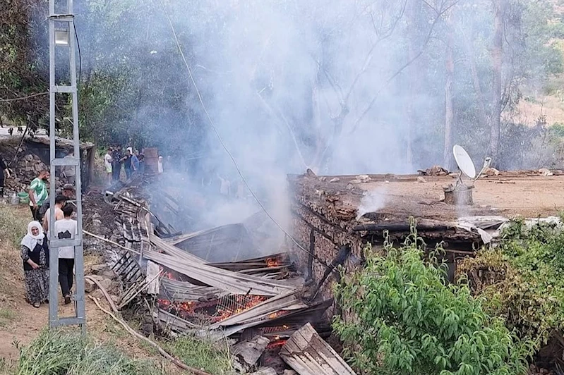 Yangın, rüzgârın etkisiyle hızla yayılarak mezrada bulunan bir eve de sıçradı.