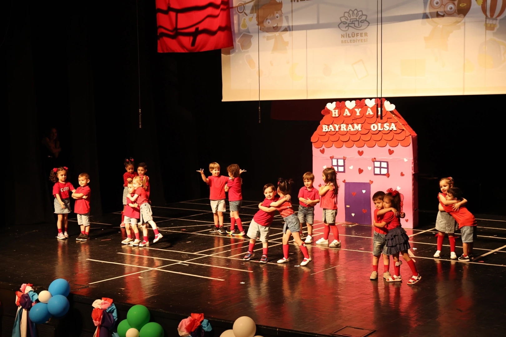 BURSA (İGFA) - Nilüfer Belediyesi’ne bağlı kreşlerde eğitim gören minikler, yıl boyunca öğrendiklerini Nâzım Hikmet Kültürevi’nde düzenlenen yıl sonu mezuniyet törenlerinde sergiledi.