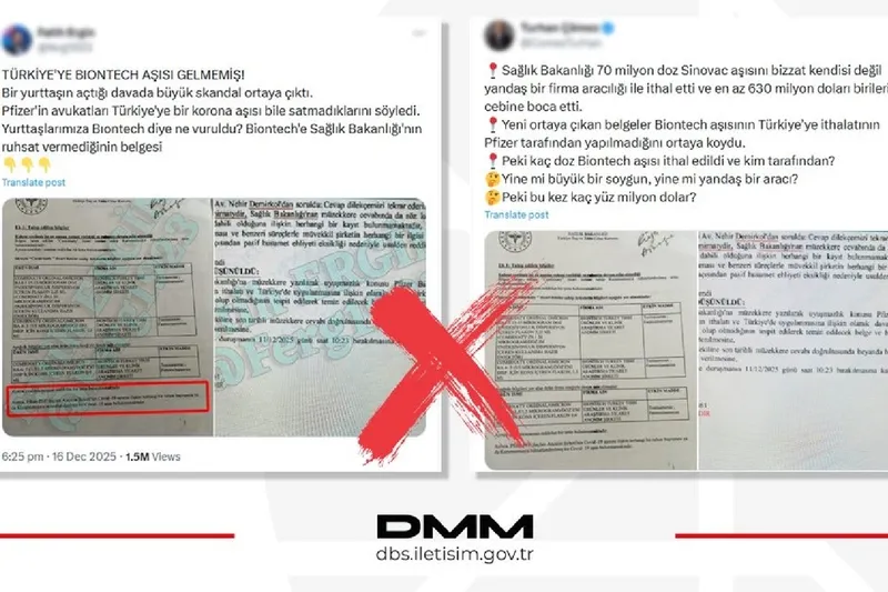 Dezenformasyonla Mücadele Merkezi, Covid-19 salgını sürecinde ülkemize BioNTech aşısının gelmediğine dair sosyal medyada yayılan iddiaların doğru olmadığını bildirdi. Açıklamada, söz konusu paylaşımların kamuoyunu yanıltmaya yönelik dezenformasyon içerdiği vurgulandı.