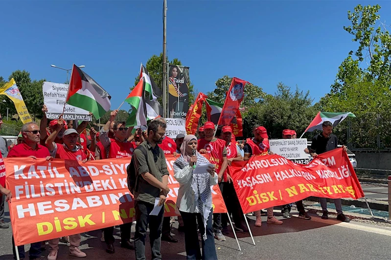 Eylemde bir konuşma gerçekleştiren DİSK Genel Başkan Yardımcısı Özkan Atar, "Katil israilin, ABD emperyalizminden aldığı cesaretle Filistin halkına uyguladığı katliamı ve Ortadoğu halklarını hedef alan savaş politikalarını protesto ediyoruz. Bizler, işçi sınıfının örgütleri olarak, dünya halklarının kardeşliği için emperyalizme karşı mücadelemizin gereği olarak Filistin halkının her zaman yanındayız. Filistin özgürleşinceye kadar dayanışmamız sürecektir." dedi. (İLKHA)