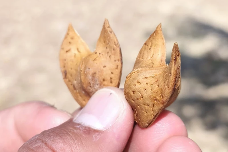 Dargeçit ilçesine bağlı Yoncalı (Zıwınge) Mahallesi’nde badem bahçesinde toplanan bir badem, alışılmışın dışında kabuk yapısıyla dikkatleri üzerine çekti.