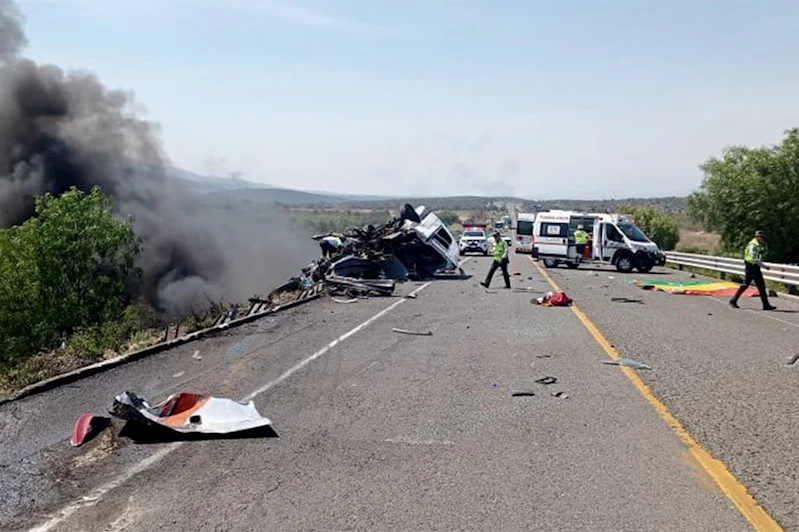 Meksika'da bir çimento kamyonunun minibüsü sollamaya çalıştığı sırada meydana gelen zincirleme trafik kazasında en az 21 kişi hayatını kaybetti.