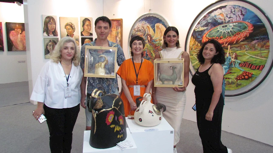 Antalya Sanat Fuarına da resim heyket ve seramik sanatçısı Rabia Tokatın keçi koleksiyonu ön plana çıkıyor. Sanatseverler tarafından tam not alıyor.