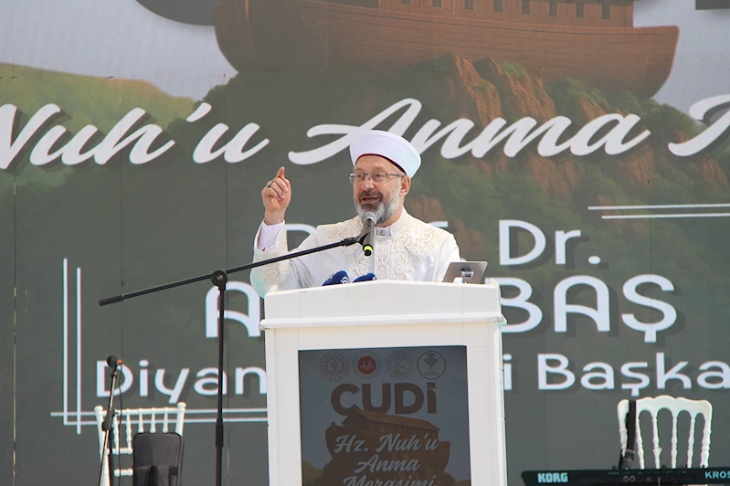 Allah tarafından gönderilen bütün peygamberlerin İslam dinini müjdelemek için gönderildiğini ve Allah katında tek dinin İslam dini olduğunu ifade eden Diyanet İşleri Başkanı Prof. Dr. Ali Erbaş “Rabbimize ne kadar şükretsek azdır. Ne güzel ne bahtiyar bir günde yani 10 Muharrem'de ve ne güzel bir vesile ile bizi burada buluşturdu. Cudi Dağı'nda Hazreti Nuh'u anma merasimi münasebetiyle ne muhteşem güzellikleri bir arada yaşıyoruz. Allah'a çok şükür. İslam yeryüzünde yaşayan tüm insanlığın huzur, mutluluk, barış içerisinde birbirine saygı, sevgi ve sadakat içerisinde yaşasınlar diye Cenabı Hakk'ın insanlığa gönderdiği dindir. Yegâne dindir, tek dindir. İşte bu dini bütün yeryüzüne ulaştırsın diye Cenabı Hak peygamberler vazifelendirmiştir. Hazreti Âdem Aleyhisselam'dan Hz. Muhammed Mustafa Aleyhisselam'a kadar bütün peygamberler İslam'ı tebliğ etmek için görevlendirilmişlerdir. Şunu da Kur'an-ı Kerim'de Cenabı Hak bizlere öğretmiştir. İslam'ın dışında din edinen kimseden o din kabul olunmayacaktır. O açıdan yeryüzüne gönderilen hak din, tek din, Allah'ın gönderdiği tek din İslam'dır. İşte bunun için İslam’ı yeryüzünde duymayan kulaklara duyurmak için, görmeyen gözlere göstermek için, anlamayan kalplere anlatmak için gönderilen bütün peygamberlere salat ve selam olsun. Hazreti Adem Aleyhisselam’a salat, selam olsun, Hz. Nuh Aleyhisselam’a salat ve selam olsun. Hz. Muhammed Aleyhisselam’a salat ve selam olsun.” ifadelerine yer verdi.