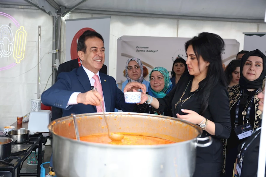 TOBB Başkanı Rifat Hisarcıklıoğlu da Erzurum Ticaret Borsası standını ziyaret ederek, ikram edilen yöresel lezzetleri tattı. Hisarcıklıoğlu, Erzurum’un gastronomi alanındaki zenginliğine dikkat çekerek emeği geçenleri tebrik etti. Erzurum Ticaret Borsası’nın yöresel ürünlerin tanıtımı konusunda sergilediği başarılı organizasyondan övgüyle bahseden Hisarcıklıoğlu, Erzurum’un kültürel mirasına sahip çıkan bu vizyoner yaklaşımın tüm illere örnek teşkil ettiğini ifade etti. Erzurum Ticaret Borsası’nın stand düzenlemesi, ürün çeşitliliği ve misafirperverliğinin takdire şayan olduğunu belirterek, Erzurum’un hem ekonomik hem kültürel anlamda değer üreten şehirler arasında özel bir yere sahip olduğunu vurguladı.