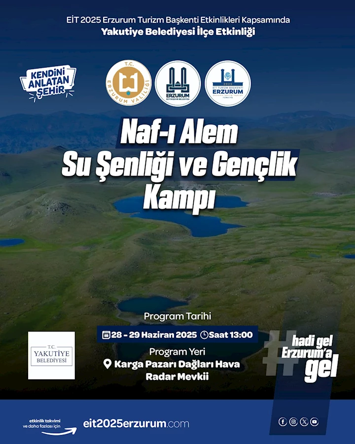 Erzurum, 2025 – EİT (Ekonomik İşbirliği Teşkilatı) Turizm Başkenti unvanına yakışır bir şekilde, Erzurum kültürel ve doğal değerlerini tanıtmaya devam ediyor. Bu kapsamda Yakutiye Belediyesi tarafından düzenlenecek 2. Geleneksel “Naf-ı Âlem Su Şenlikleri ve Gençlik Kampı”, 28-29 Haziran 2025 tarihlerinde gençleri ve doğa tutkunlarını Erzurum’un eşsiz coğrafyasında bir araya getirecek.