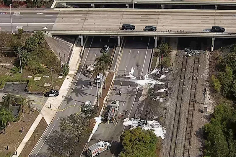 Uçağın, Boca Raton'da bir otoyola düştüğü ve bir arabaya çarparak alev aldığı açıklandı.