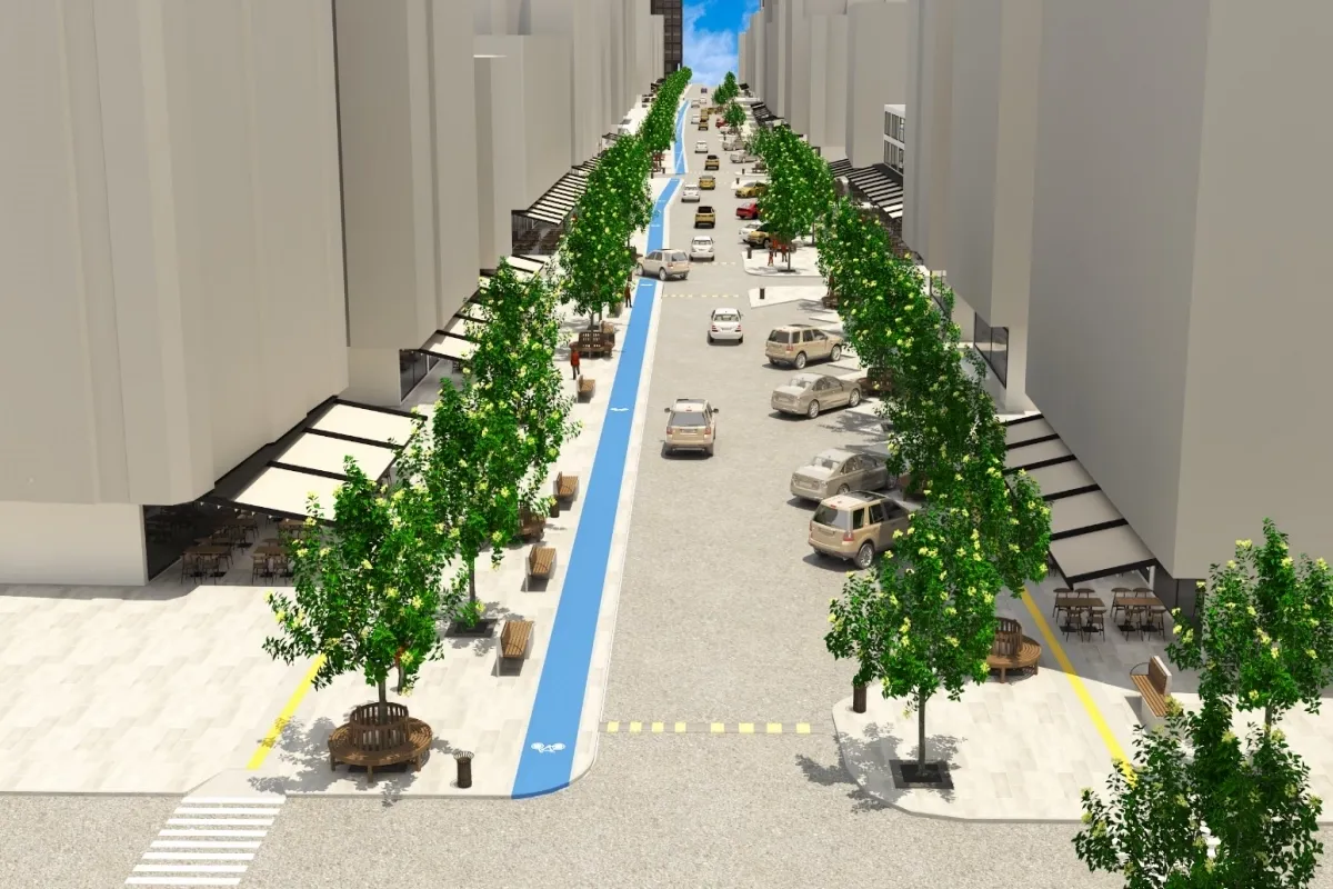 Bisiklet yolunun da bulunacağı yeni düzenleme ile daha yeşil, daha yaşanabilir, yaşayan bir cadde hedefleniyor.