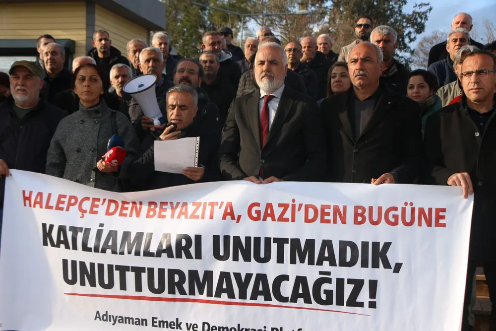 Binlerce sivilin yaşamını yitirdiği ve on binlercesinin yaralandığı Halepçe Katliamı'nın 38. yılı dolayısıyla Adıyaman Emek ve Demokrasi Platformu Mimar Sinan parkında basın açıklaması gerçekleştirdi.