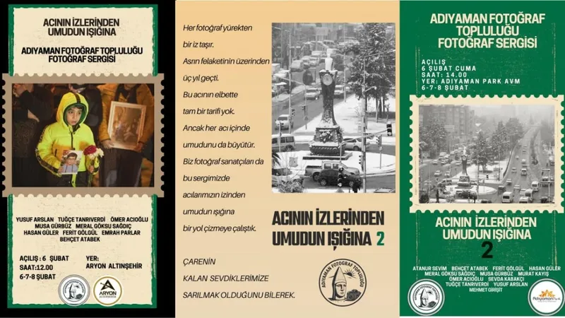 Adıyaman Park AVM'de gerçekleşecek sergide ise aynı başlığın devam serisi olarak "Acının İzlerinden Umudun Işığına 2" temasıyla farklı fotoğrafların yer alacağı bildirildi. Sergideki karelerin ziyaretçilere samimi anlar yaşatacağı, doğanın ve hayatın içindeki dayanıklılığa dair farkındalık oluşturacağı ifade edildi.