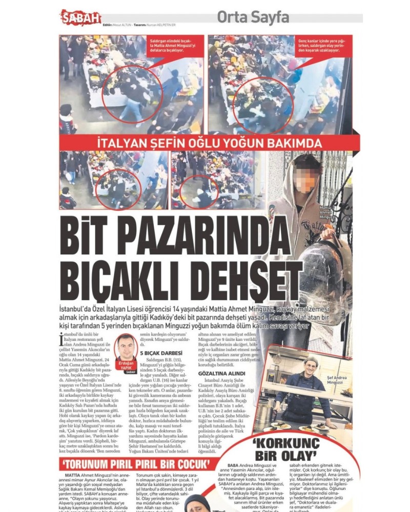 "Mattia Ahmet Minguzzi'nin katledilmesi, o günden beri Türkiye'nin gündeminden düşmeyen olaylardan biri oldu. Bu haberi henüz Mattia Ahmet hayattayken, olayın üzerinden üç gün geçmişken yazdım. SABAH Gazetesi olarak bu haberi kamuoyuna ilk kez duyurmanın gururunu yaşadık."