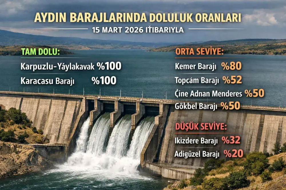 Aydın’daki barajların 15 Mart 2026 itibarıyla doluluk oranları belli oldu. Verilere göre iki baraj tam kapasiteye ulaşırken, bazı barajlarda ise kritik seviyeler dikkat çekti.