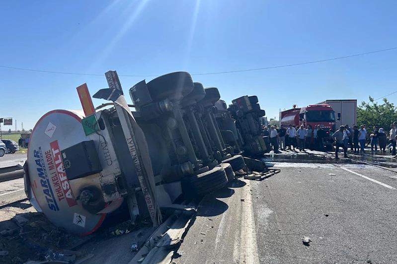 Tarihi İpekyolu üzerinde Kızıltepe istikametine doğru seyreden 47 ADG 259 plakalı tır, tekerleklerinin yol kenarındaki bariyerlere çarpması sonucunda devrildi.