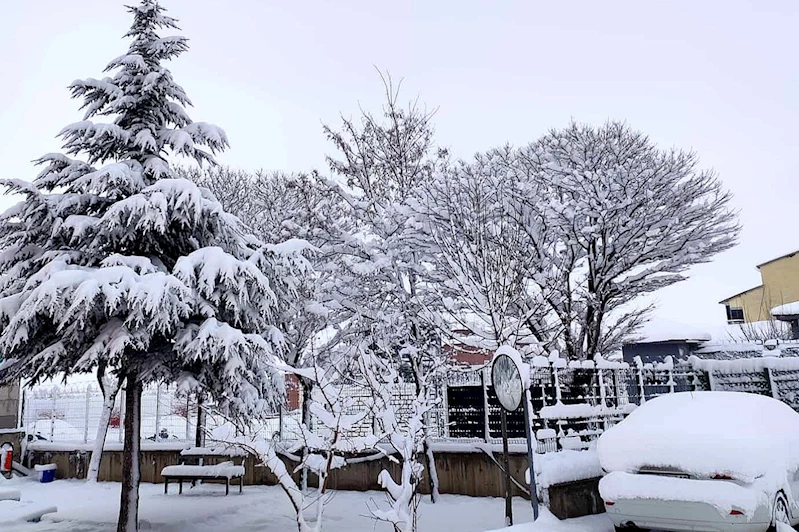 Kar yağışıyla birlikte beyaza bürünen Karlıova’da kar kalınlığı, 15 santimetreyi geçti.