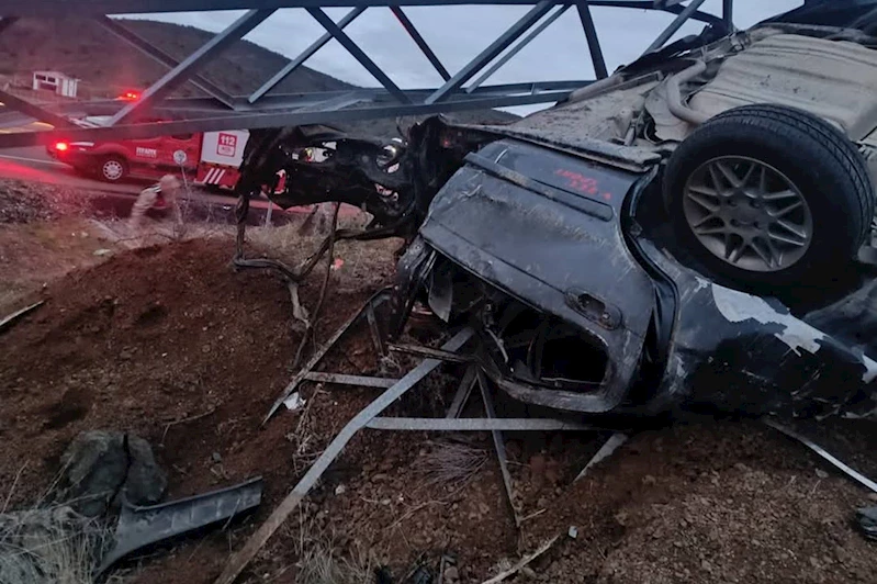 Çarpmanın etkisiyle araç hurdaya dönerken elektrik direği de kırılarak aracın üzerine düştü.