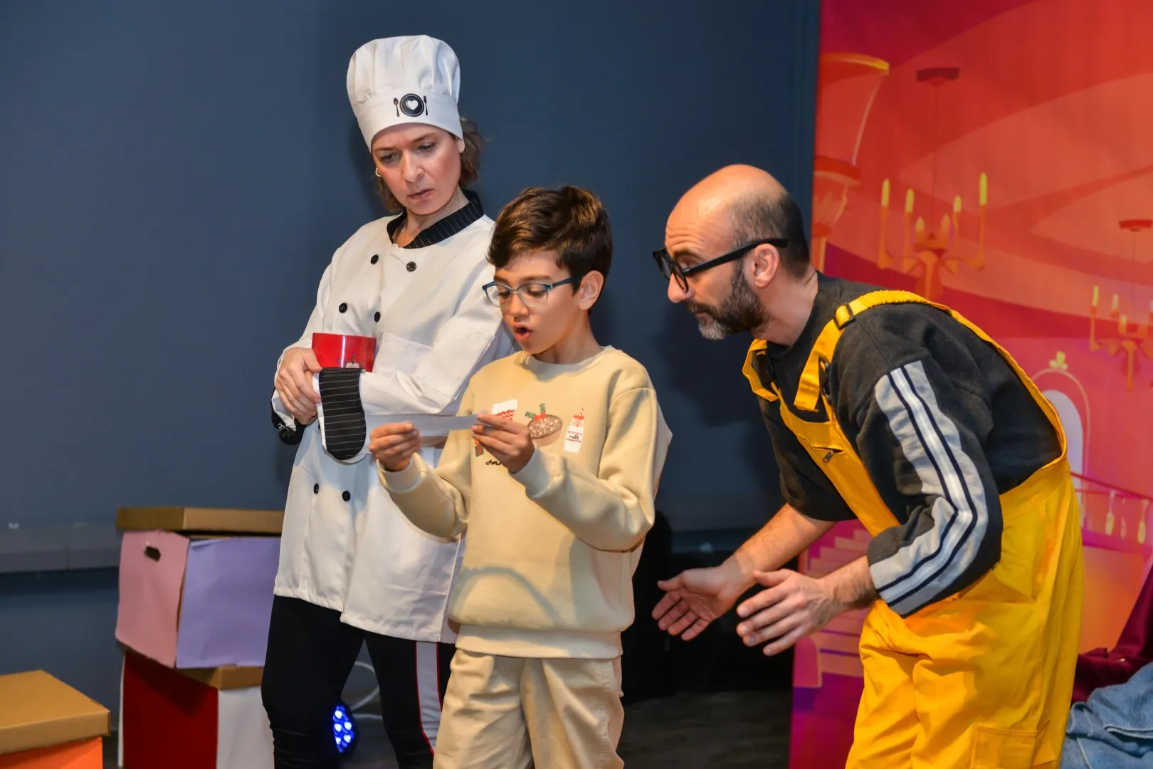 Bol kahkahalı, bilmeceli ve sürprizlerle dolu yapım, çocukların hem eğlenmesini sağladı hem de sosyal gelişimlerine katkı sundu. Minik izleyicilere interaktif ve eğlenceli bir tiyatro deneyimi sunan oyunun sonunda, oyuncular uzun süre alkışlandı.