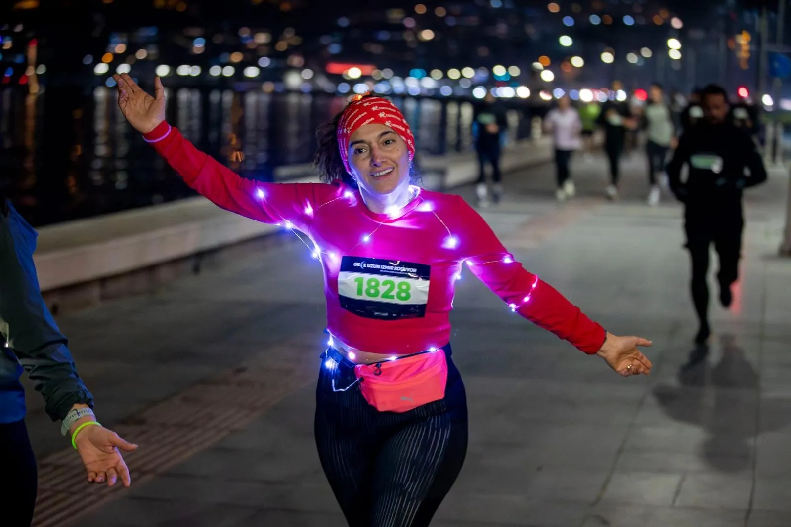 İzmir Büyükşehir Belediyesi, yılın en uzun gecesi 21 Aralık’ta 6,5 kilometrelik koşu düzenledi. En Uzun Gece Koşusu’na katılan İzmirliler, vücutlarına sardıkları ışıklarla renkli görüntüler oluşturdu.