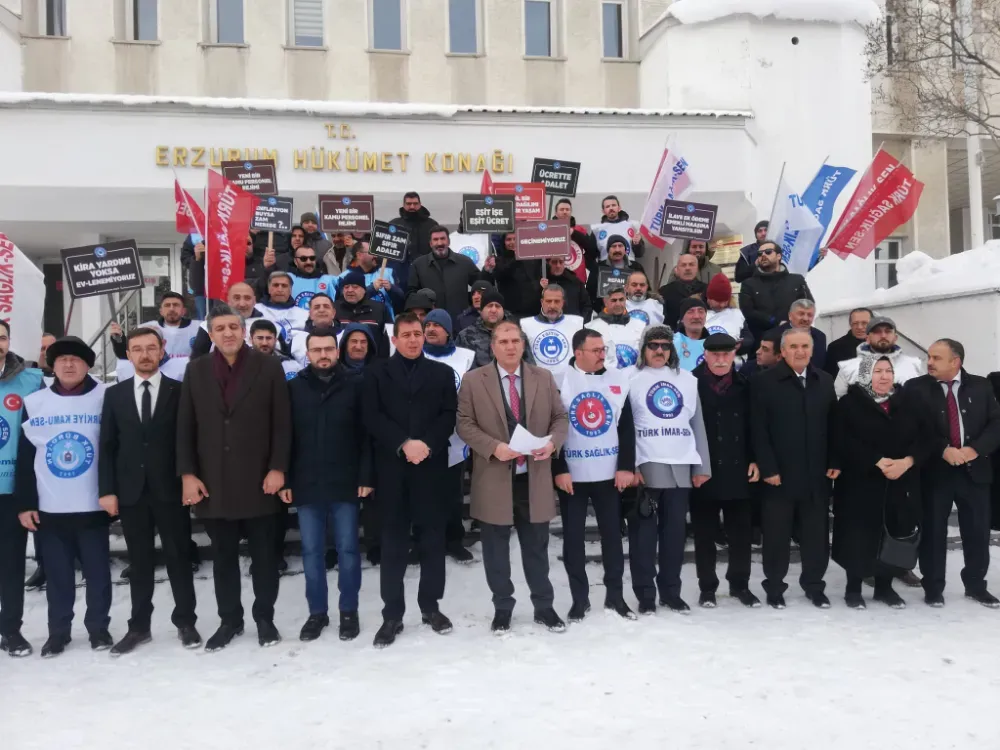 Türkiye Kamu-Sen Erzurum İl Temsilcisi vekili Barış Anıl, Kamu-Sen e bağlı sendika temsilcileri, yönetim kurulu üyeleri ve memurlardan oluşan bir heyet ile Erzurum Valiliği ek bina önünde basın açıklamasında bulundu. Soğuk bir kış gününde, milyonlarca kamu çalışanı ve emeklinin sesi olmak üzere çağrımıza kulak vererek burada toplandığınız için hepinize ayrı ayrı teşekkür ediyorum, diyen Anıl; kamu çalışanlarının ve emeklilerinin alım gücünün her geçen gün biraz daha erimekte, geçim şartlarının sürdürülemez hâle geldiğinin vurgusunu yaptı…