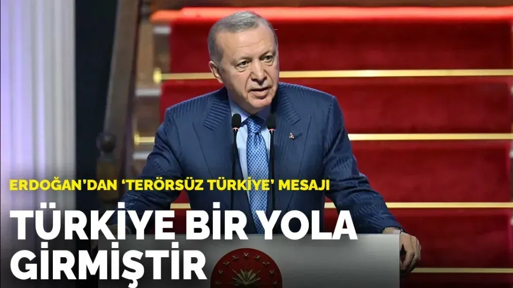 “‘Terörsüz Türkiye’ hedefimize doğru, dikkatli olduğu kadar kararlı, temkinli olduğu kadar sağlam adımlarla ilerliyoruz. Hayırlı bir işe koyulduk ve bunu inşallah başaracağız” diyen Erdoğan, Suriye’de yaşanan gelişmelerin de Türkiye’nin iradesini desteklediğini söyledi.