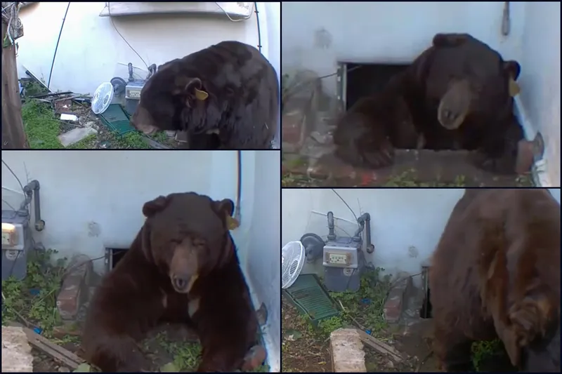 Görüntülerde ayının, evin altına açılan küçük giriş deliğinden girip çıktığı, ayrıca mülk çevresinde dolaştığı görülüyor. İlk giriş anına ait videoda ise ayının, koruyucu tel ekranı kolayca söküp sürünme alanına sıkışarak içeri girdiği anlaşılıyor.