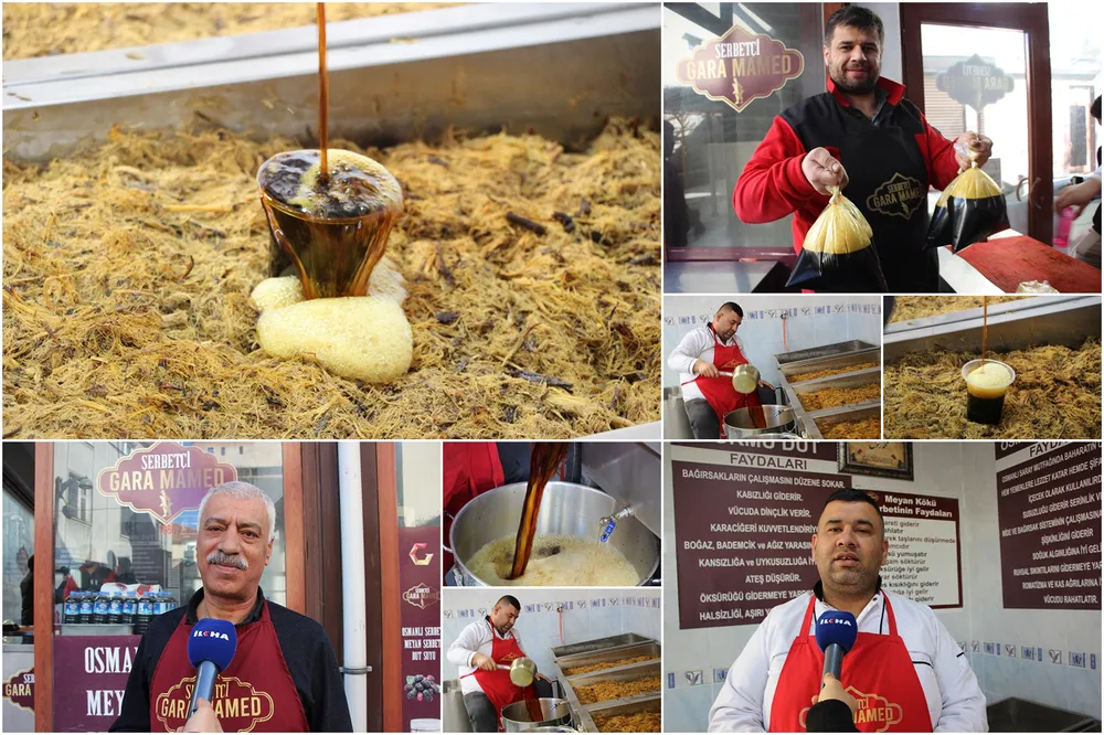 Ramazan ayının vazgeçilmezlerinden biri olan meyan şerbetinin yapımı hakkında bilgi veren Mehmet usta ve oğlu Mustafa, meyan şerbetinin birçok faydasının olduğunu dile getirdiler.