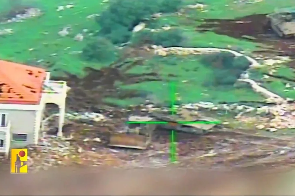 Hizbullah'ın askeri medyası da Markabe kasabasının güneydoğu eteklerinde bir siyonist "Merkava" tankını güdümlü füzeyle hedef alan bir operasyonun görüntülerini yayınladı.