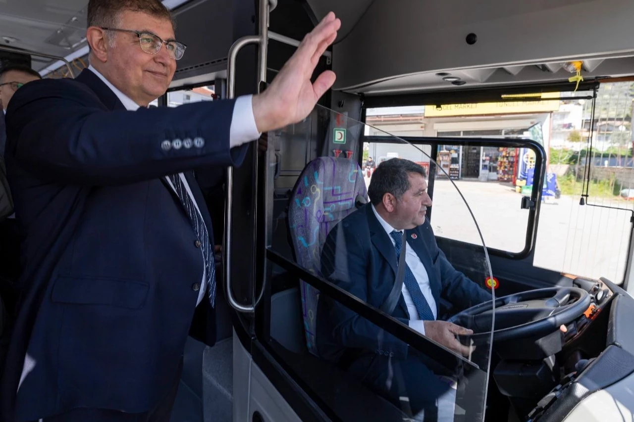 İZMİR (İGFA) - İzmir Büyükşehir Belediyesi’nin; güvenli, konforlu ve ekonomik toplu taşıma hizmetini kentin dört bir yanına yayma yolunda hayata geçirdiği İZTAŞIT projesi; Seferihisar, Kiraz, Menemen, Yeni Foça, Ödemiş Kaymakçı, Bergama ve Beydağ’ın ardından Bayındır’da da vatandaşların hizmetine sunuldu. Atatürk Anıtı önündeki törene İzmir Büyükşehir Belediye Başkanı Dr. Cemil Tugay, Bayındır Belediye Başkanı Davut Sakarsu, Bayındır Otobüs, Minibüs, Midibüs ve Motorlu Taşıyıcılar Kooperatifi Başkanı Mestan Ökten, ESHOT Genel Müdürü Övünç Özgen, ilçe belediye başkanları, belediye bürokratları, siyasi parti temsilcileri, meclis üyeleri, muhtarlar ve vatandaşlar katıldı.