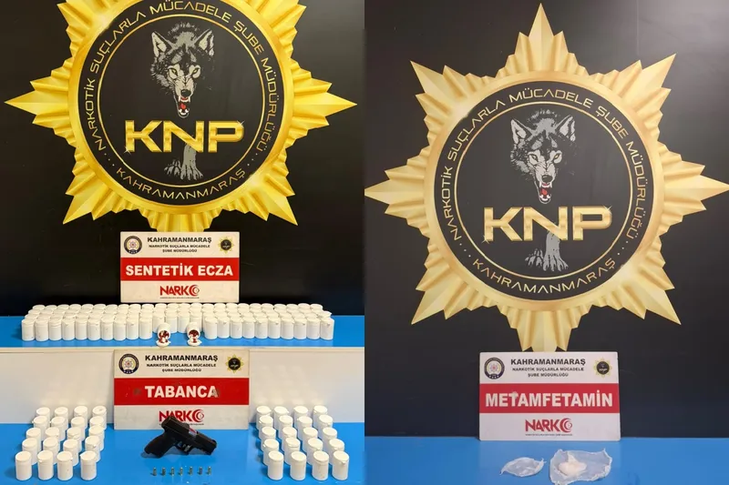 Kahramanmaraş Emniyet Müdürlüğü Narkotik Suçlarla Mücadele Şube Müdürlüğü ekipleri tarafından 6 ve 7 Şubat tarihlerinde yürütülen çalışmalarda, uyuşturucu madde ve silah ele geçirildi.