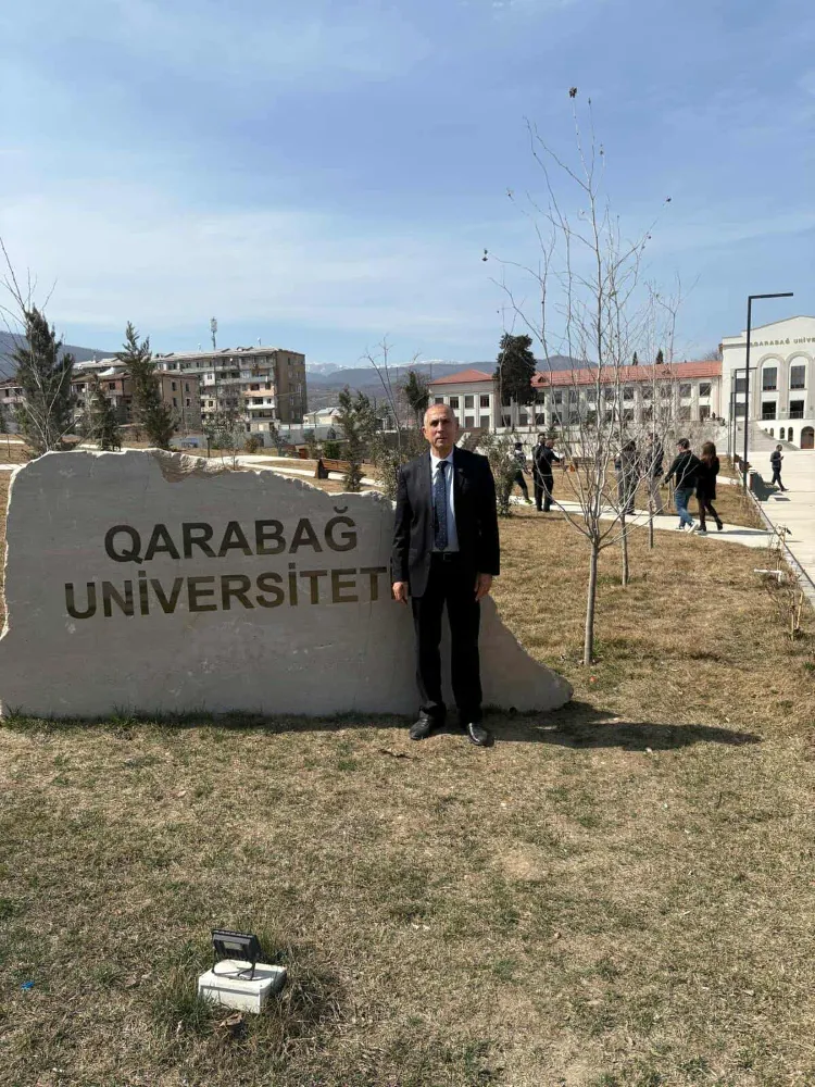 Daha sonra Türkmen heyeti, Hankendi şehrinde yeni kurulan Azerbaycanlı gençlere eğitime başlayan Karabağ Üniversitesi’ni ziyaret etti. Karabağ Üniversitesi Rektörü Prof. Dr. Şahin Bayramov, heyeti selamlayarak, üniversitede eğitim ve bilimsel araştırmaların yürütülmesi için devlet tarafından her türlü imkanın sağlandığını belirtti. Türkmen heyeti, üniversitenin dersliklerini, laboratuvar ve kütüphanesini gezerek oluşturulan imkanları inceledi ve heyete üniversite hakkında detaylı bilgi verildi. Türkmen heyeti, Azerbaycan’ın ilim ve irfan yolunda attığı bu güçlü ve kararlı adımı yerinde görmekten büyük bir onur ve memnuniyet duydu. Gerçekleşen ziyarette Türkmen heyeti, Karabağ Üniversitesi ile Türkmen akademisyenler arasında bilimsel ve kültürel ortak proje ve akademik iş birliklerini güçlendirmeye yönelik görüş alışverişinde bulundu. Sayın Rektörümüz Prof. Dr. Şahin Bayramov’a misafirperverlikleri, ilgi ve nazik kabulleri için teşekkür ederiz.