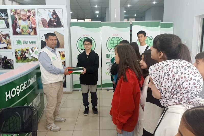 Batman Merkez Selahattin Eyyubi Orta Okulu Kur'an Kursu 6. ve 7. sınıf öğrencileri, aralarında biriktirdikleri harçlıklarını Gazze'deki kardeşlerine ulaştırılmak üzere Umut Kervanı'na teslim etti.