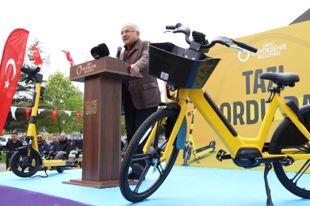 ORDU (İGFA) - Ordu Büyükşehir Belediyesi çevreci, enerji verimliliği yüksek ve trafik dostu ulaşım sistemlerini bir tanesini daha şehre kazandırdı. Sıfır karbon salınımı hedefiyle çevrenin korunmasında önemli katkıları olacak olan ve TAZI adı verilen elektrikli skuter ve bisikletler için hizmete alım ve tanıtım töreni düzenlendi.