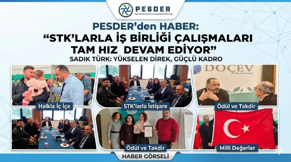 Pamukkale Esnaf ve Sanatkarlar Derneği (PESDER) Başkanı Sadık Türk, sivil toplum kuruluşları (STK) ile başlattığı iş birliği atağını hız kesmeden sürdürüyor. “Yükselen Değer, Güçlü Kadro” sloganıyla yola çıkan Türk, Pamukkale’nin esnaf yapısını güçlendirmek ve toplumsal dayanışmayı artırmak için saha çalışmalarına ağırlık veriyor.
