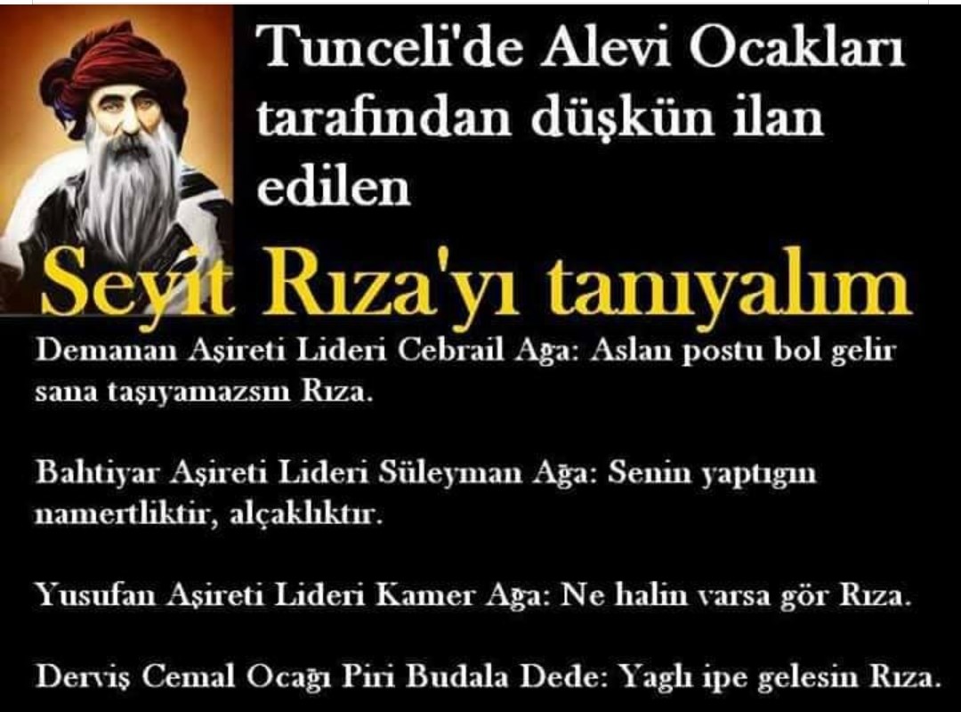 *Rıza Zelyut- Dersim İsyanları ve Seyit Rıza Gerçeği.