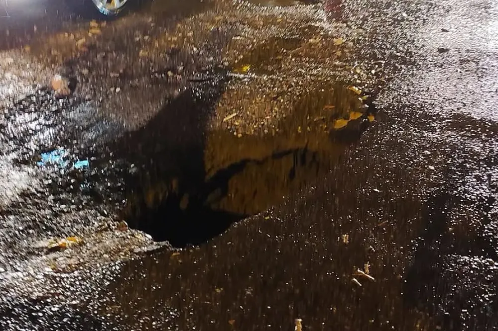 Edinilen bilgiye göre, kentte etkili olan sağanak yağışın ardından yolun bir bölümü çöktü ve yoldan geçen bir otomobil, çökme nedeniyle oluşan çukura düşerek mahsur kaldı.
