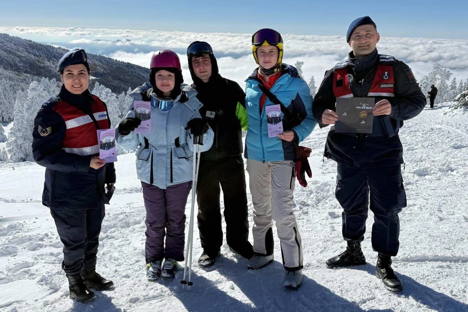 BURSA (İGFA) - Bursa İl Jandarma Komutanlığı’na bağlı Aile İçi Şiddetle Mücadele ve Çocuk Kısım Amirliği personeli tarafından, Uludağ Milli Parkı’na kış turizmi amacıyla gelen ziyaretçilere yönelik Kadın Acil Destek Uygulaması (KADES) hakkında bilgilendirme faaliyeti gerçekleştirildi.