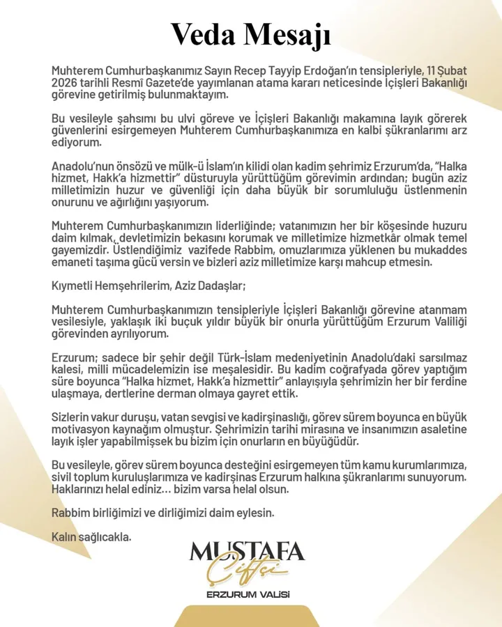 Erzurum Valisi Çiftçi'den Vali olarak son mesaj... Sultan II. Abdülhamit Han’ın vefat yıl dönümünde; rahmet ve hürmetle anıyoruz.