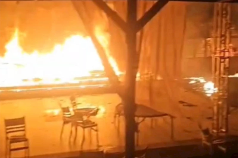 Yangın, salonun büyük bir bölümünde ciddi maddi hasara yol açtı.