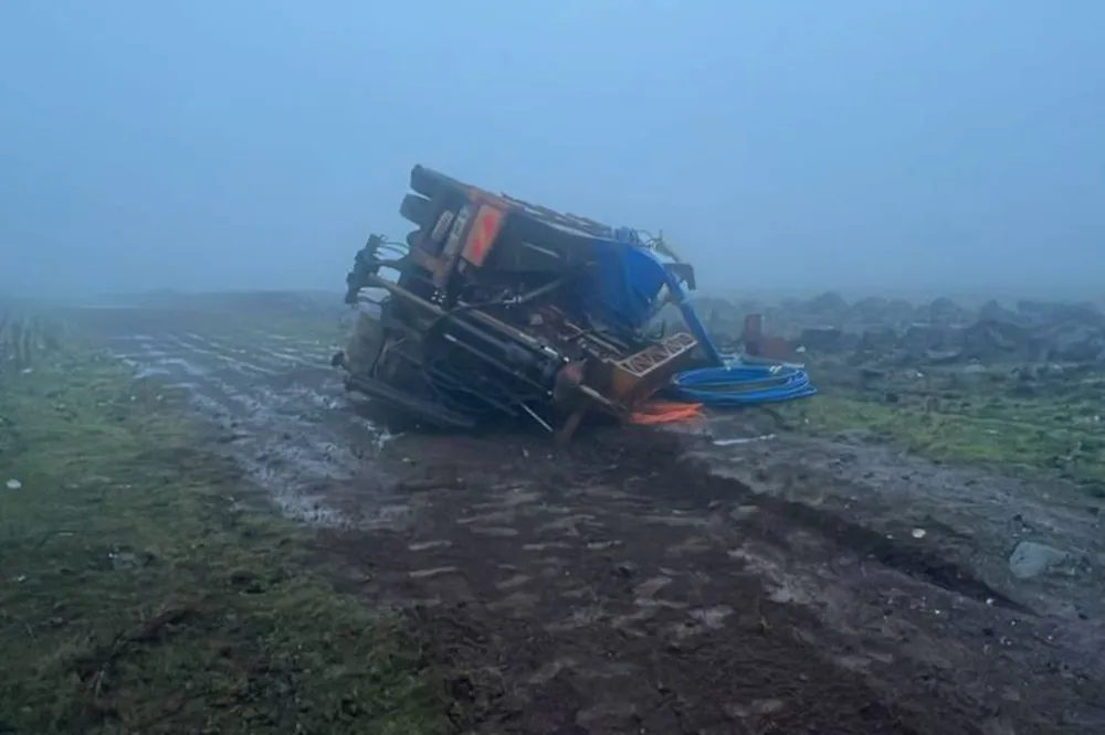 Yoğun sis kazaya neden oldu: İş makinesi kontrolden çıktı