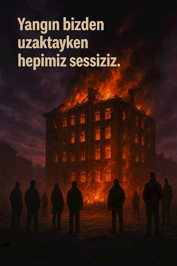 Vicdan tatilde ama toplum yangın yeri. Ve biz bu yangını uzaktan izliyoruz, elimize çay alıp. Belki bir gün kendi evimize sıçrayınca fark ederiz ama iş işten geçmiş olur.