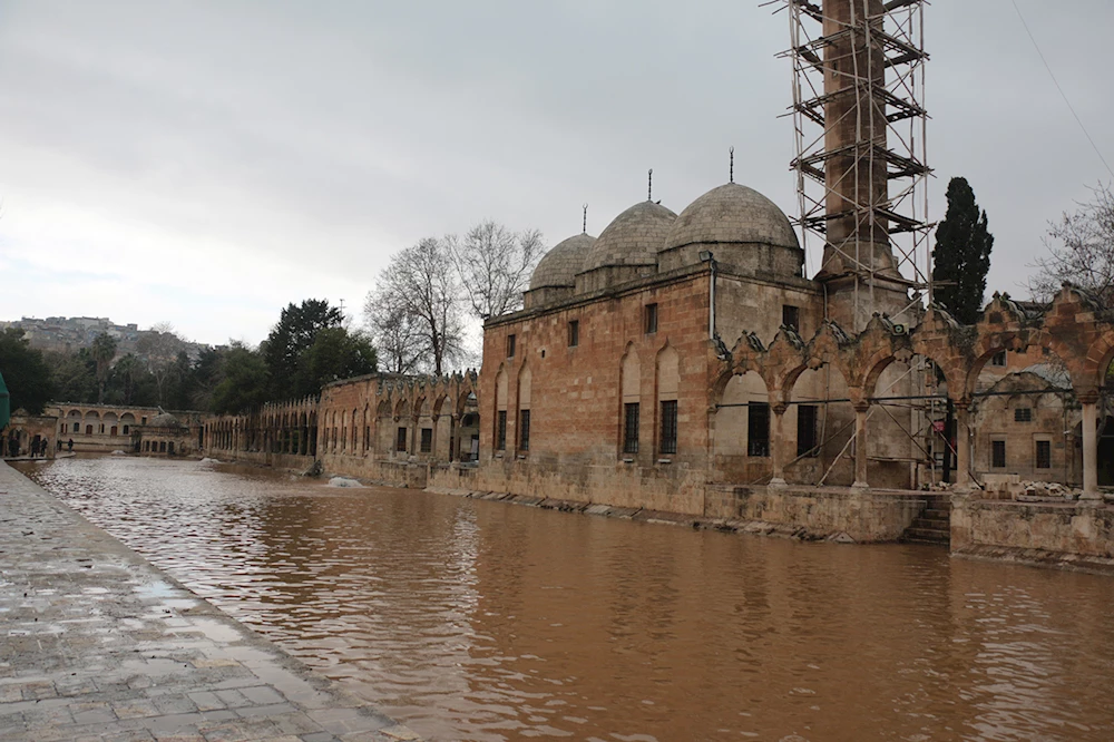 Tarihi Balıklıgöl selden dolayı çamurlu su ile kaplanırken balıklar gözden kaybolmuştu.